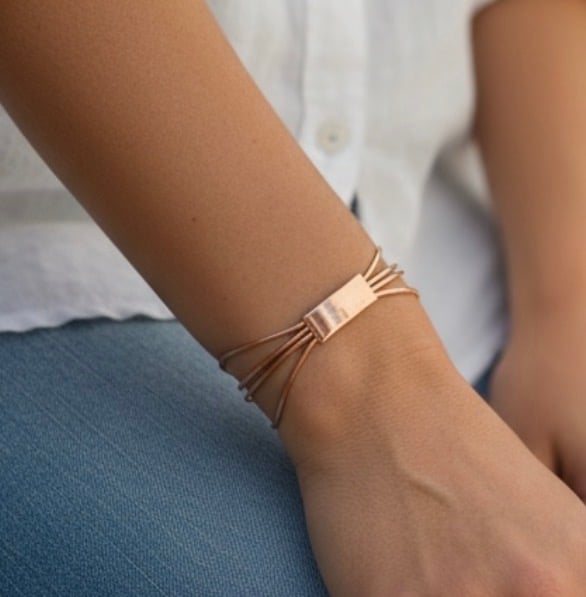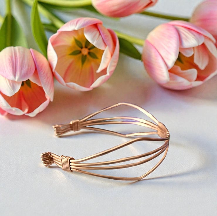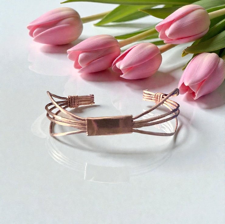 Solid Copper Art Deco Style Cuff Bangle, Adjustable, Gift Boxed - Size S-L.