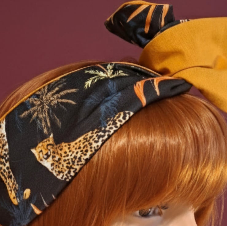 Leopard Mustard Wide Wire Headwrap