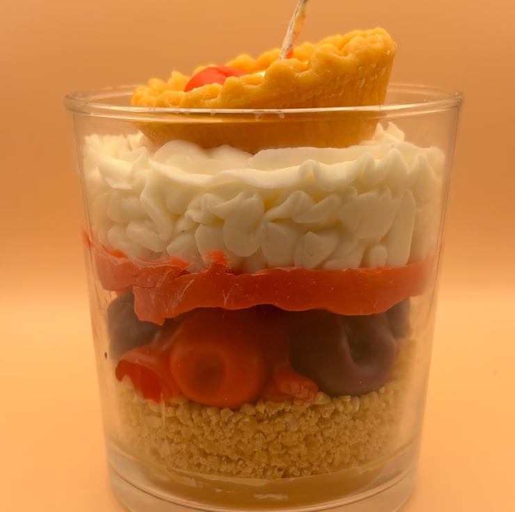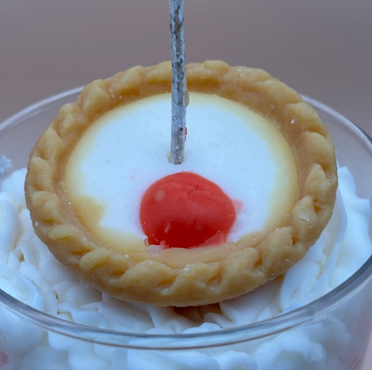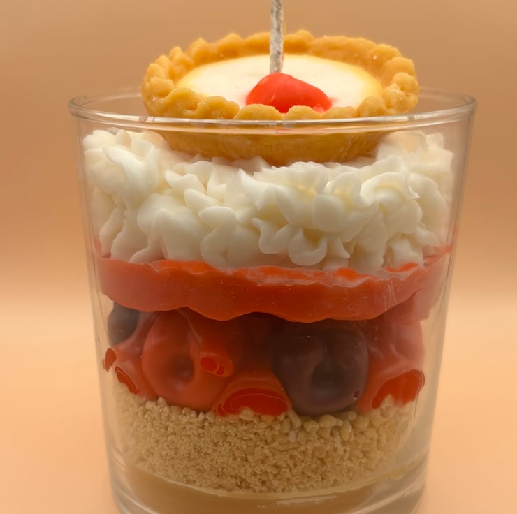I wanted to capture the cosy feeling of walking into a kitchen where something sweet has just come out of the oven. The Cherry Bakewell is such a familiar treat here in the UK, and I loved the idea of turning that comforting scent and look into a candle. The glossy cherry jam, the soft cream and the little tart on top all came from wanting to make something playful that brings a smile as soon as you see it. It is a small nod to simple pleasures and the joy of home baking in a candle.