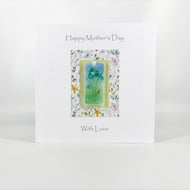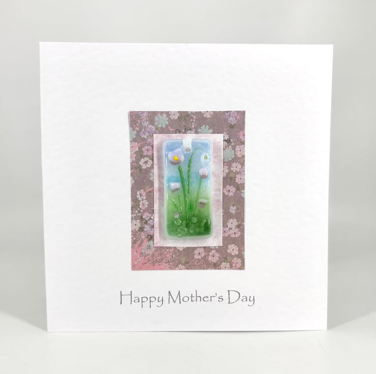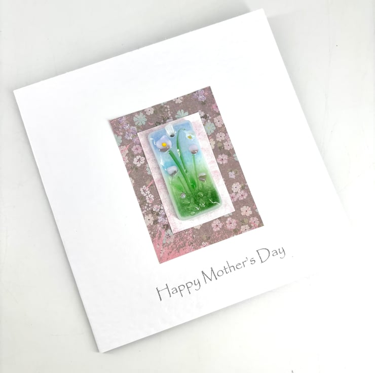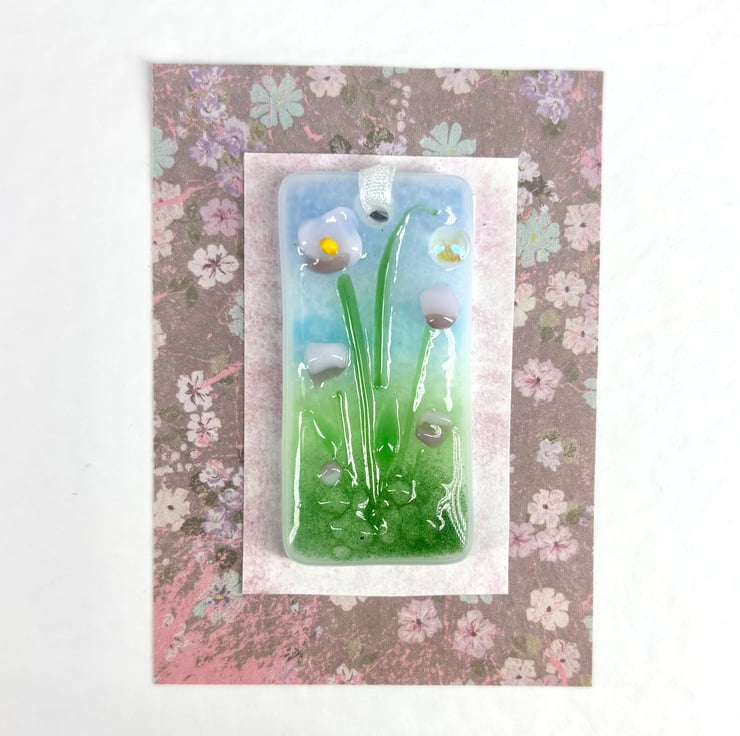 A gorgeous handmade card with a ‘mini meadow’ floral fused glass hanging attached to it - the perfect card and gift in one!