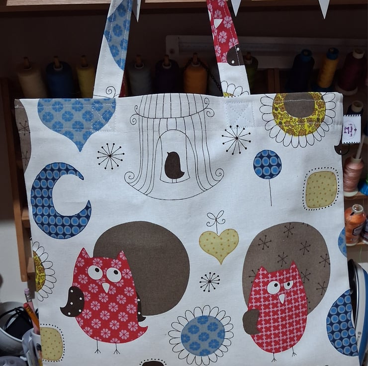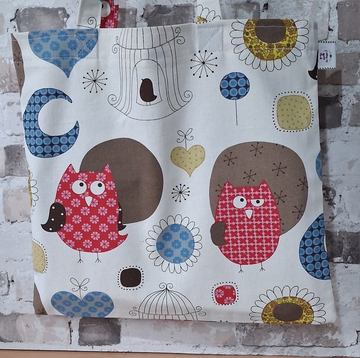 This unlined tote bag is very useful while being sustainable. The design features owls, cages, and flowers in different colours, a lovely design. Easy to fold, It's perfect to have in your handbag in case you need an extra bag while shopping. It's unlined so lightweight. The handles are reinforced for peace of mind.