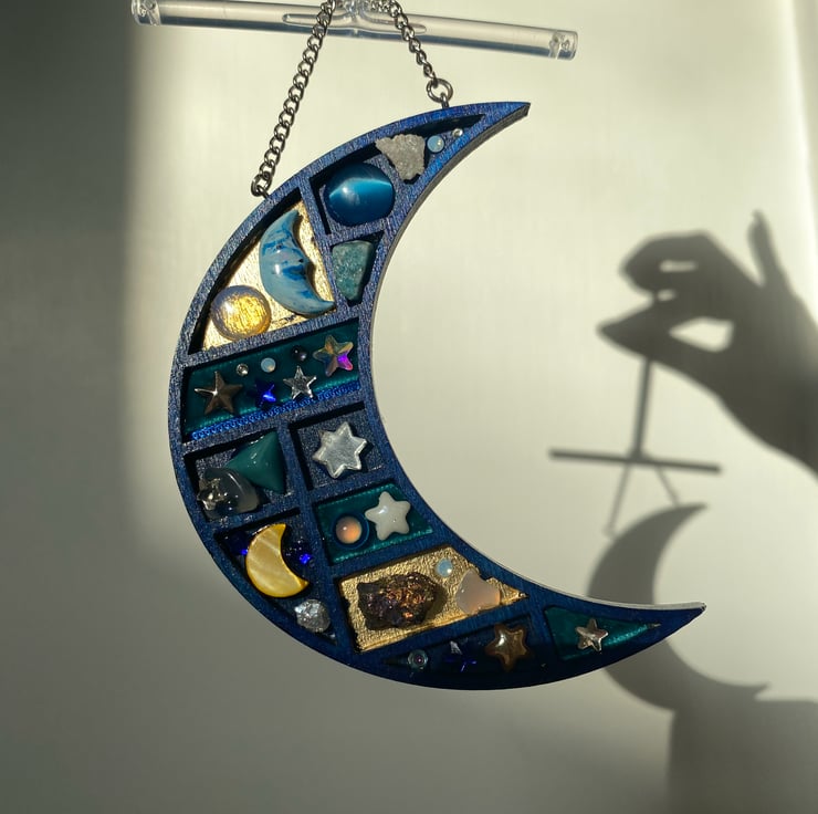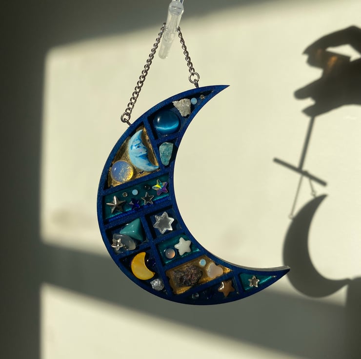Mini Whimsigoth Moon Curio - Wall hanging - tree hanging - gallery decor