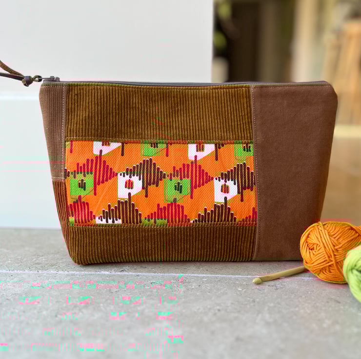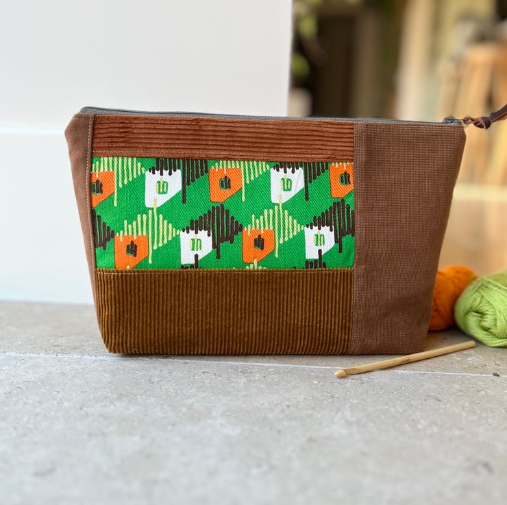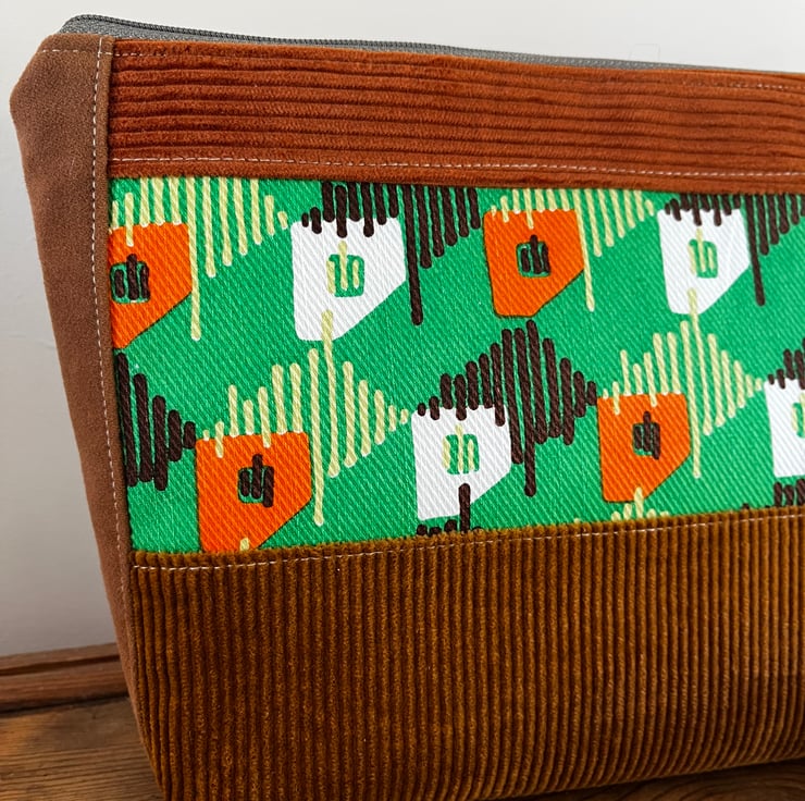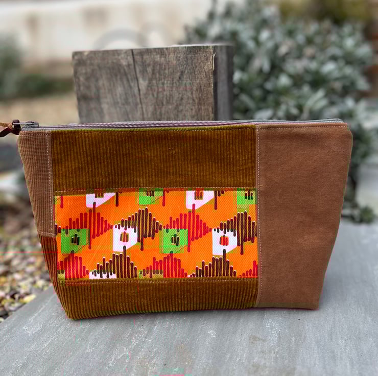 Vintage seventies fabric and corduroy patchwork large zip pouch