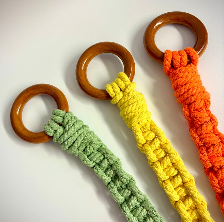 Handmade Macramé Yoga Mat Strap made of natural, eco-friendly and biodegradable cotton yarn with varnished wooden hoops.