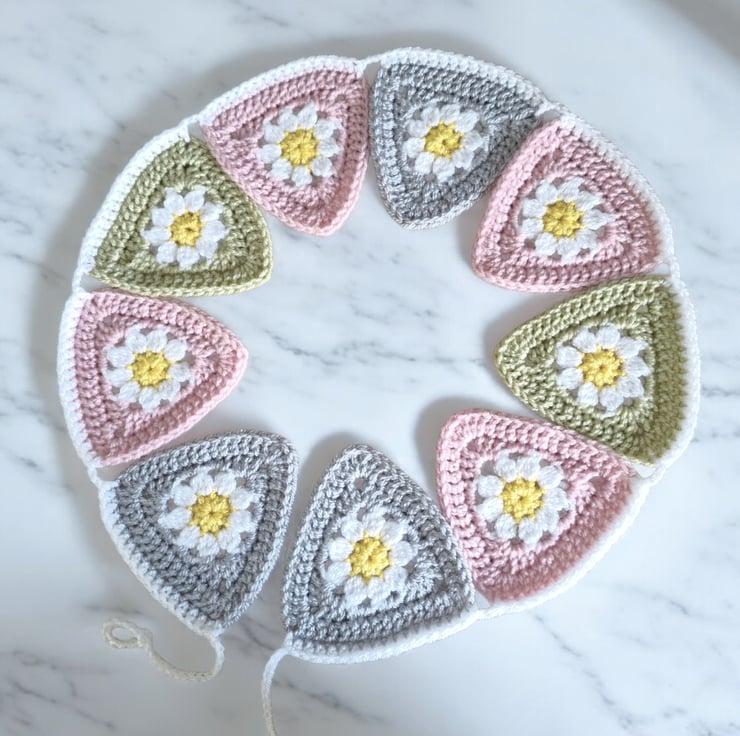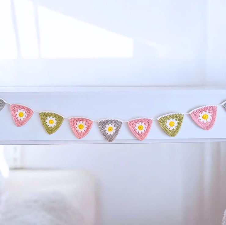 Handmade Crochet Daisy Bunting – 9, 13 or 17 Flag Garland