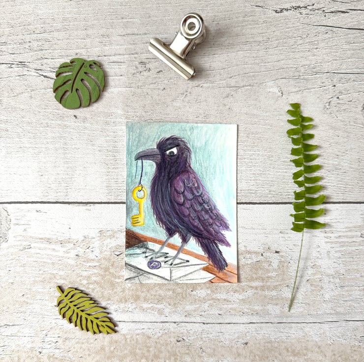 - A small fab painting that would make a perfect gift for big garden bird and crow lovers!