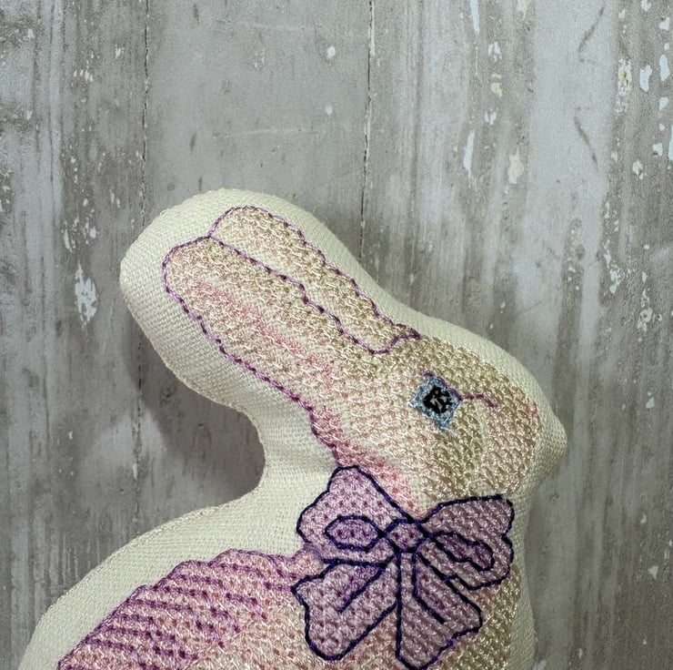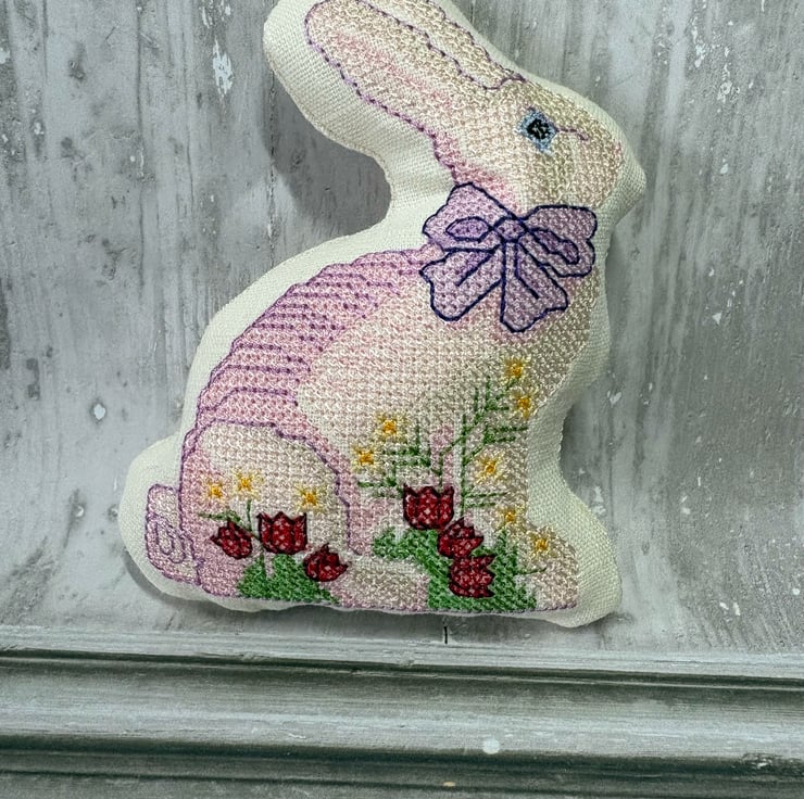 Bowl Filler machine embroidered cross stitch design. Measuring 4.75" x 3.75"". Perfectly Pale prewashed linen fabric filled with polyester fibrefill. Little pillows of fun. Select 1 or fill a bowl full of Spring colours.