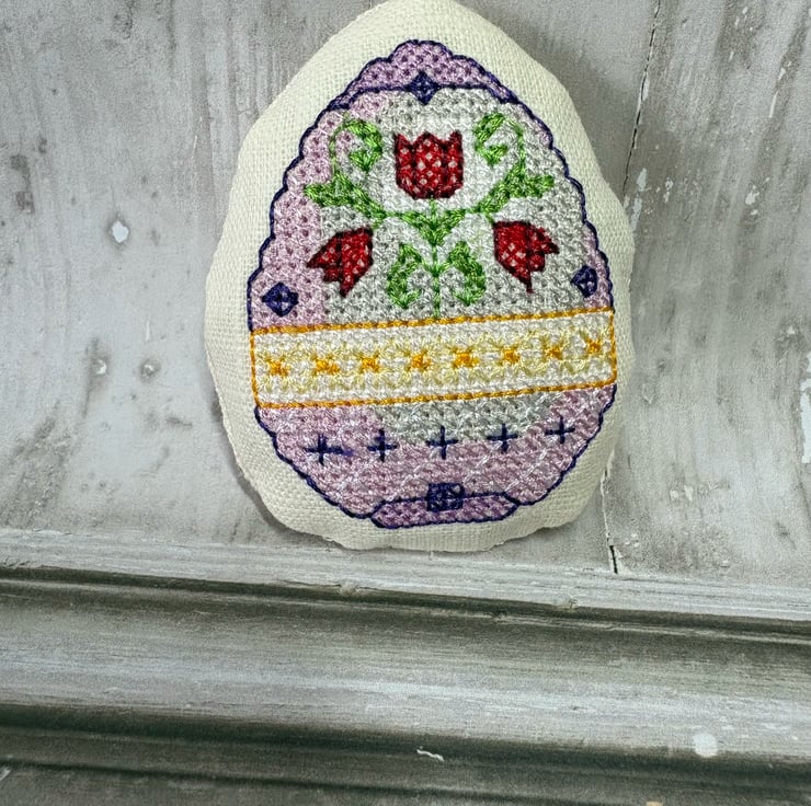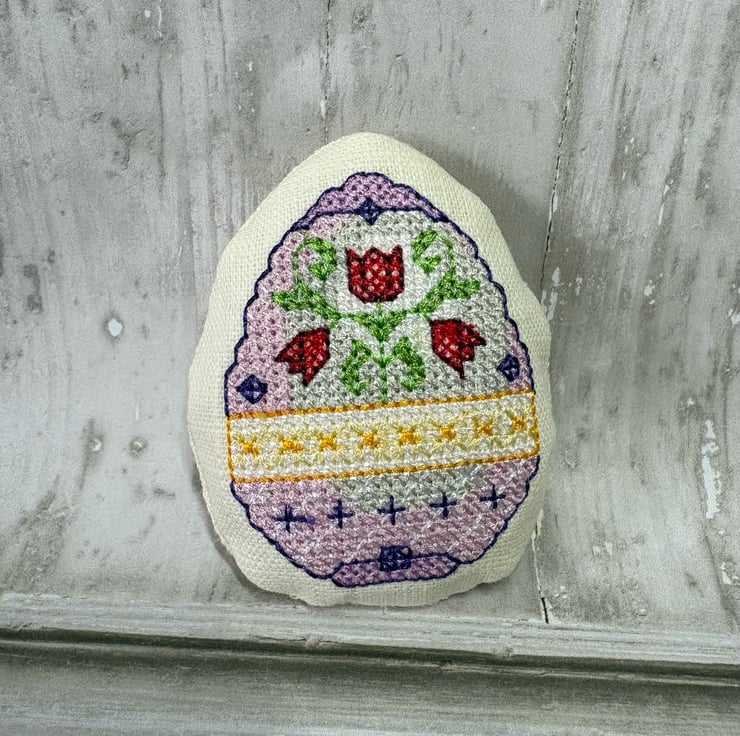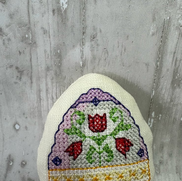 Bowl Filler machine embroidered cross stitch design. Measuring 3" x 2.25". Perfectly Pale prewashed linen fabric filled with polyester fibrefill. Little pillows of fun. Select 1 or fill a bowl full of Spring colours.