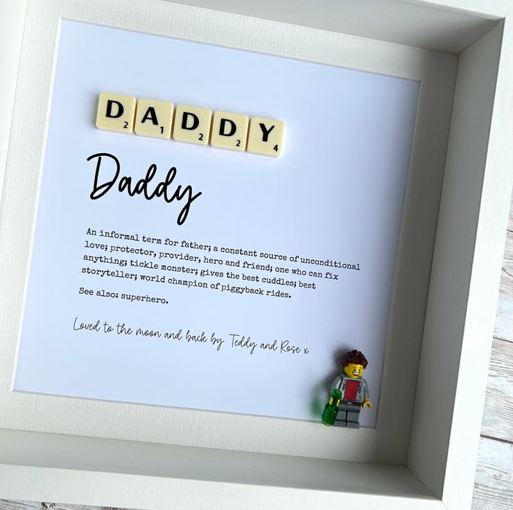 Dad Daddy Scrabble Minifigures Frame Personalised