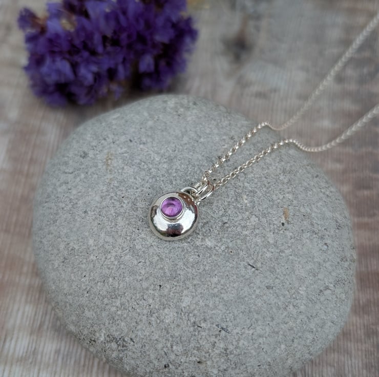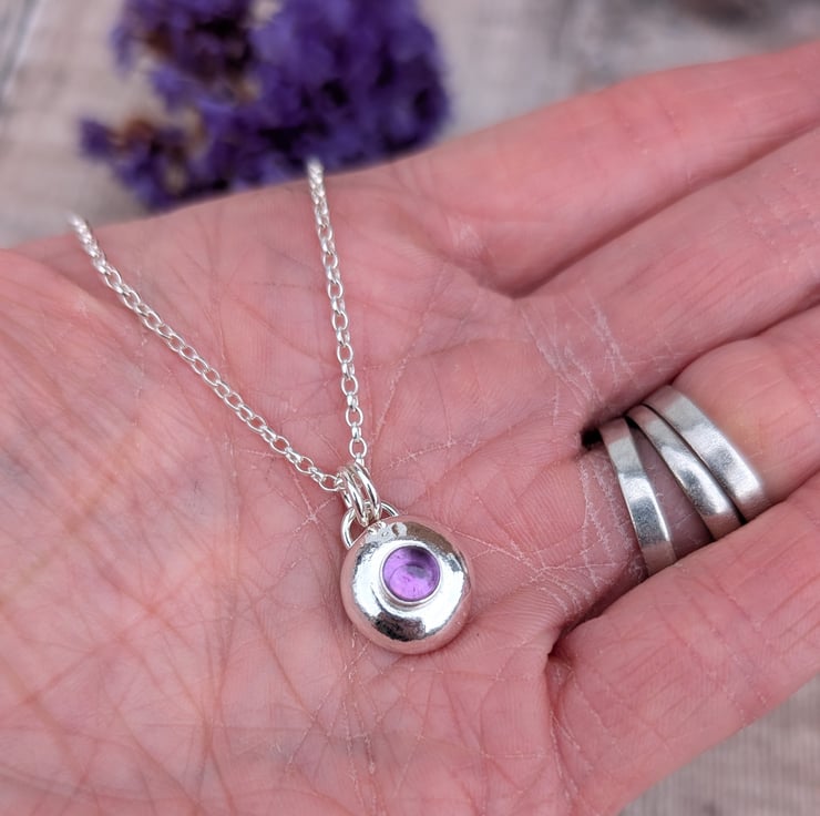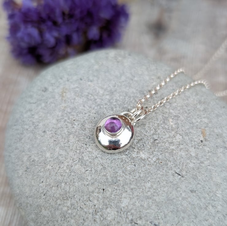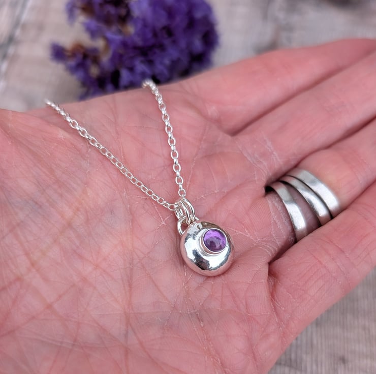 Gorgeous silver pebble necklace with amethyst, hand made from recycled Sterling Silver using traditional silversmith techniques and given a smooth polished finish.