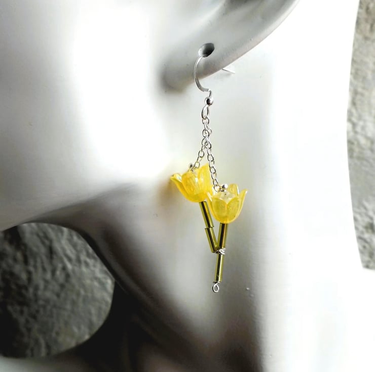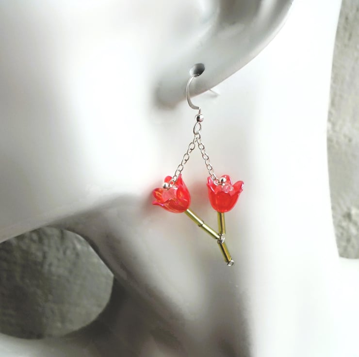 Add a touch of springtime floral charm to your everyday style with these handmade lucite tulip flower earrings. Designed to capture the joyful, vibrant colours and soft elegance of blooming tulips. Available in six feminine shades - red, pink, orange, yellow, pale blue and lavender - perfect for adding a cheerful pop of colour to your outfit.