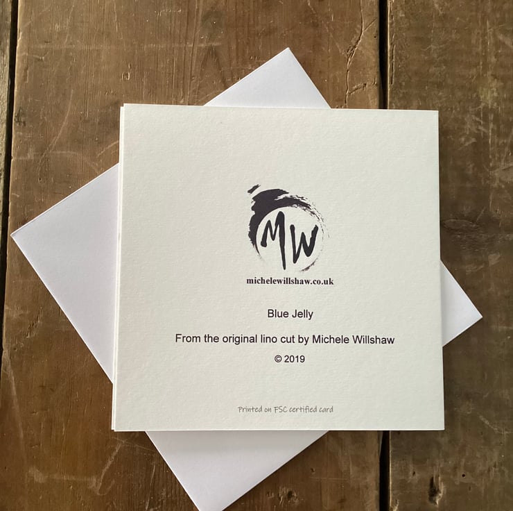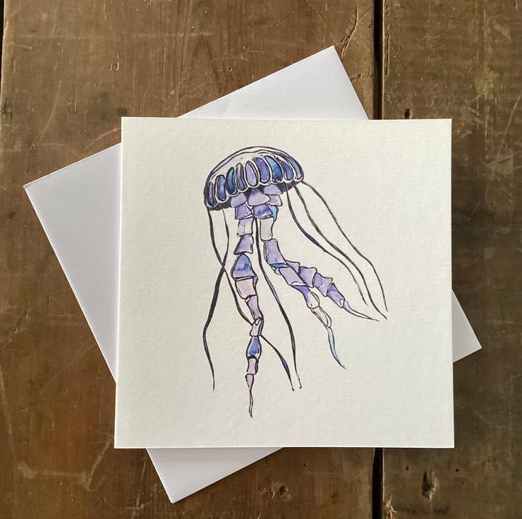 A matt white card decorated with a purple jellyfish.