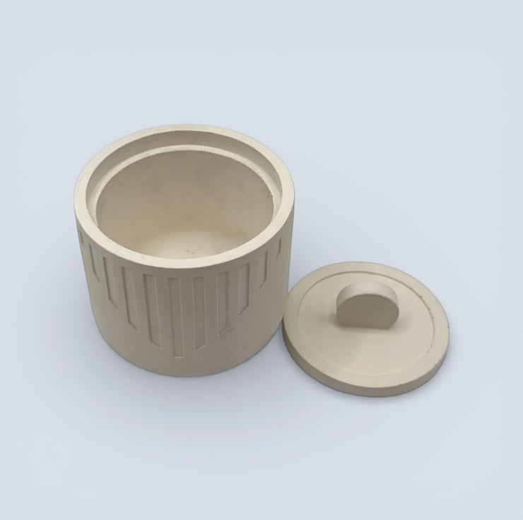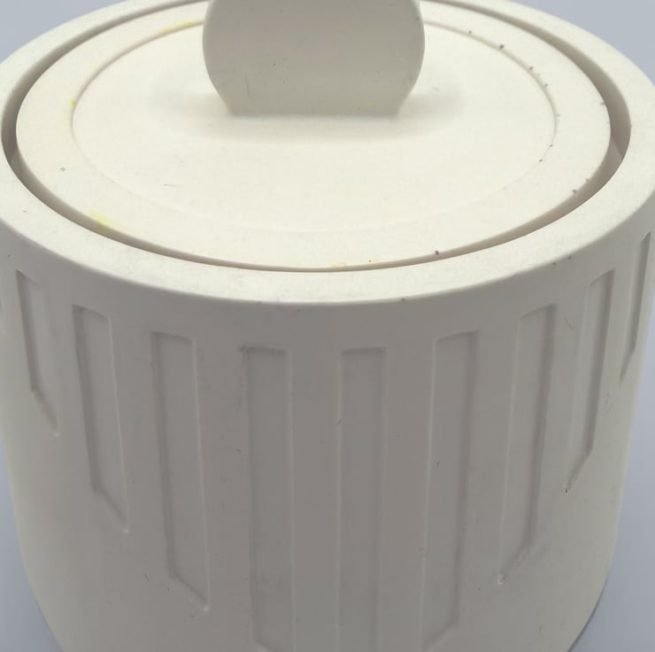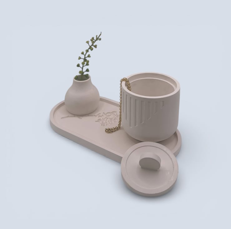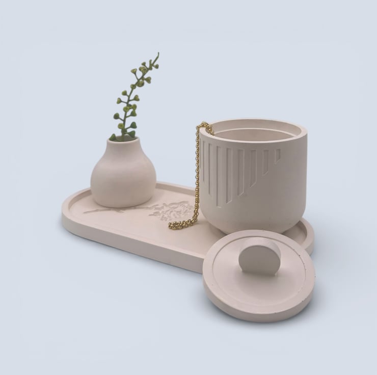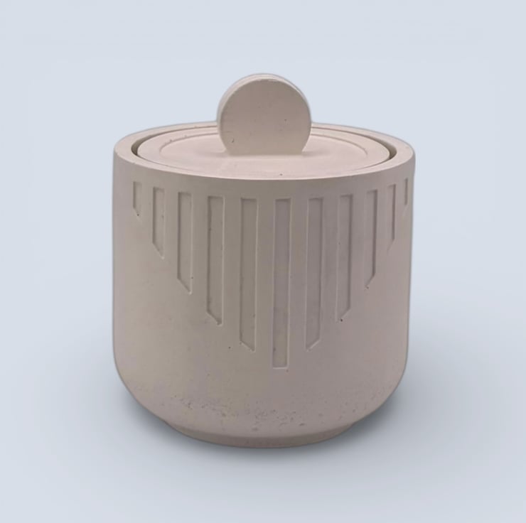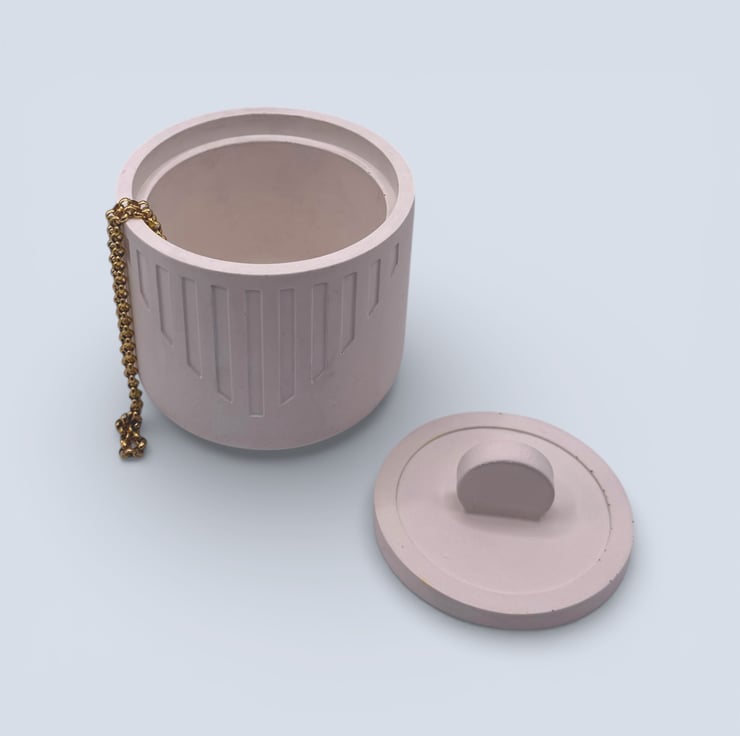 Each box is handmade from a water-based mineral material with a smooth, stone-like feel. The exterior has been sealed and polished with two coats of plant-based wax sealer to enhance the finish. Cork pads are attached to the base to help protect surfaces. Small air bubbles and slight variations are part of the handmade process and add to the individuality of each piece. Please note that screen settings may cause colours to appear slightly different in person.