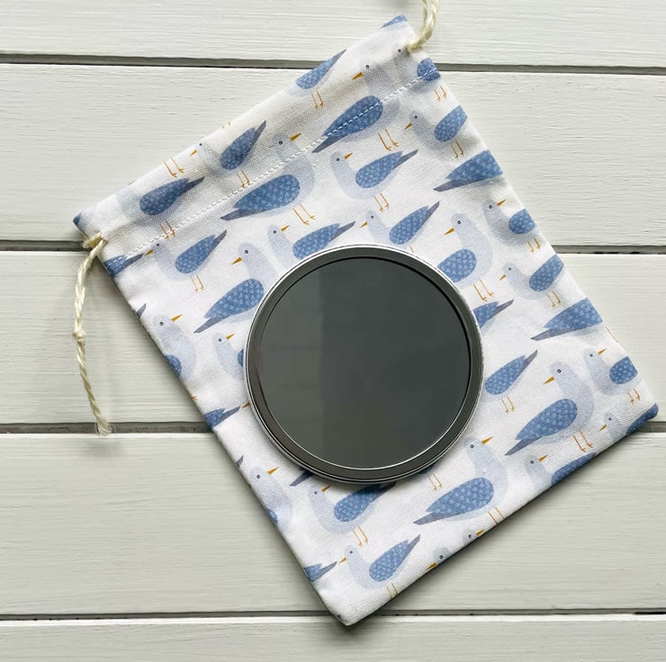 Comes complete with a cotton drawstring bag so makes a beautifully presented gift but which is generously sized so you can keep your mirror and lippy together.