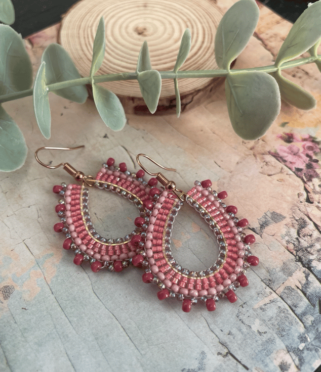 Pretty hand beaded boho dangle earrings, birthday , mum gift, teen girl, summer