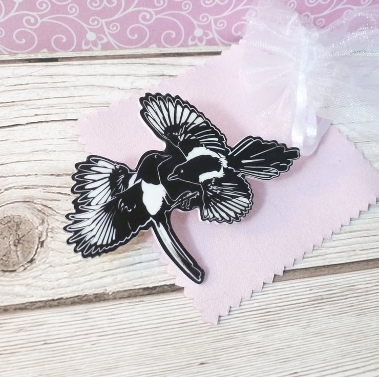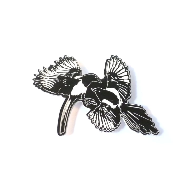 Magpie magnet, two for joy magpie fridge magnet, laser engraved fridge magnet for nature lovers. Lightweight and fun magnet made from laser cut and engraved acrylic. The magnet is secured by a strong circular magnet on the reverse.