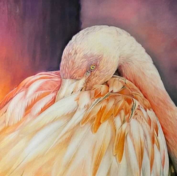 This perfectly imperfect original coloured pencil drawing of a vibrant pink Flamingo is in the perfectly imperfect sale because it is a piece I drew 4 years ago and doesn’t fit into my current style of drawing. Besides this it is a perfectly imperfect piece of artwork.