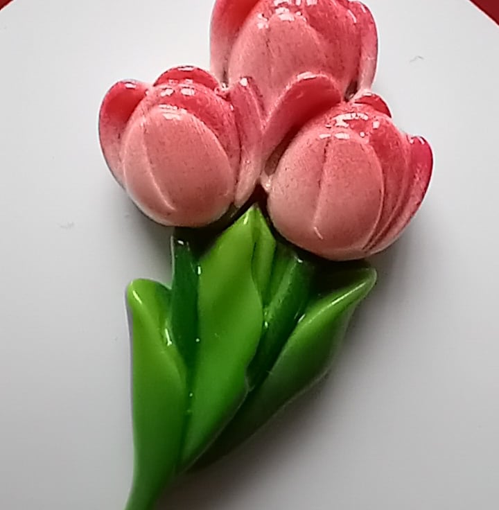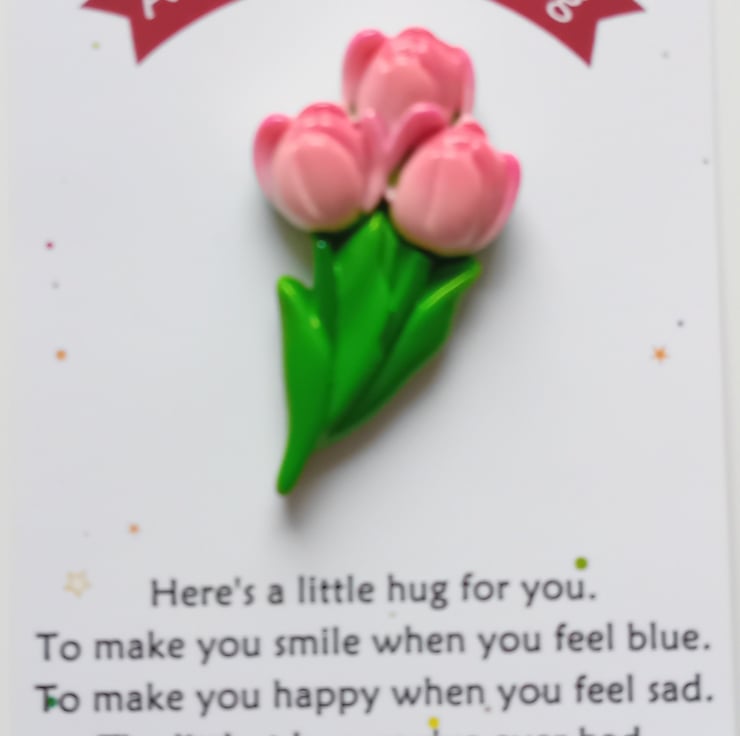 Apocket hug to send to someone who is down, let them know you care. A bunch of 3 tulips and verse on card..