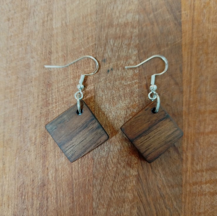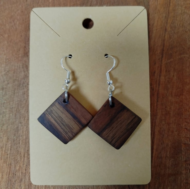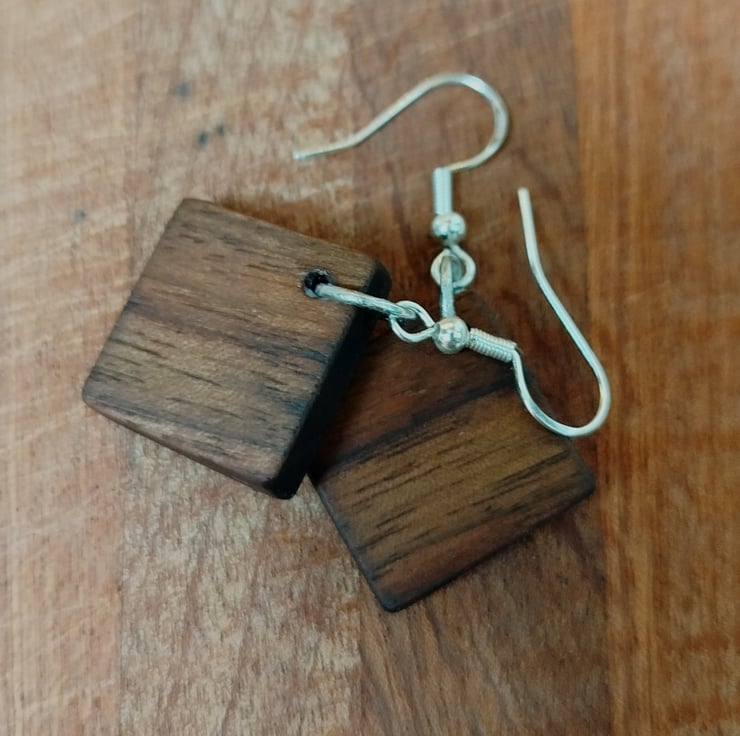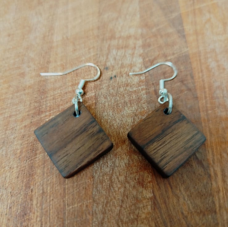 Lightweight Walnut hardwood earrings with 925 silver-plated hooks and stainless steel jump rings. Finished with natural mineral oil and soy wax.
