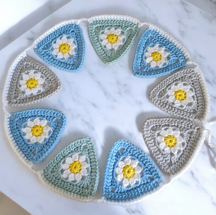 Handmade Crochet Daisy Bunting – Coastal Garden Collection