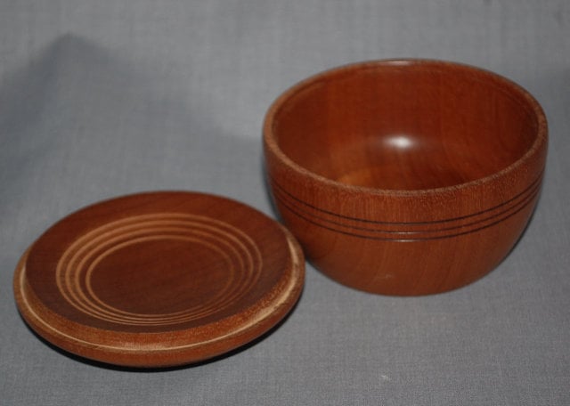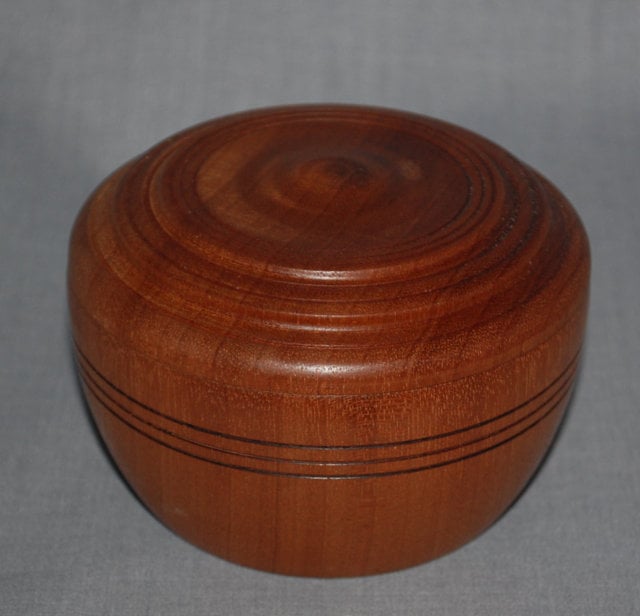 This attractive lidded pot is hand made from reclaimed sapele timber; both the base and the top have the traditional distinct indentations. Dressing table tidy? Desk top lidded box? Keepsake safely tucked away? As we don't have any more of this reclaimed sapele, this has been discontiuned.