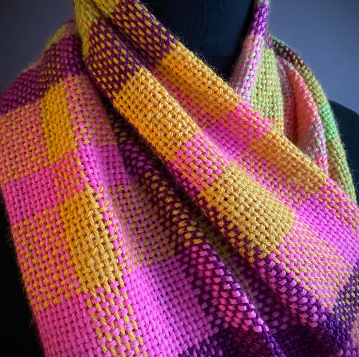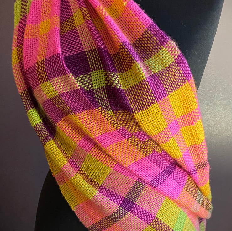Gloriously textured wrap in radiant citrus and plum shades. Truely striking