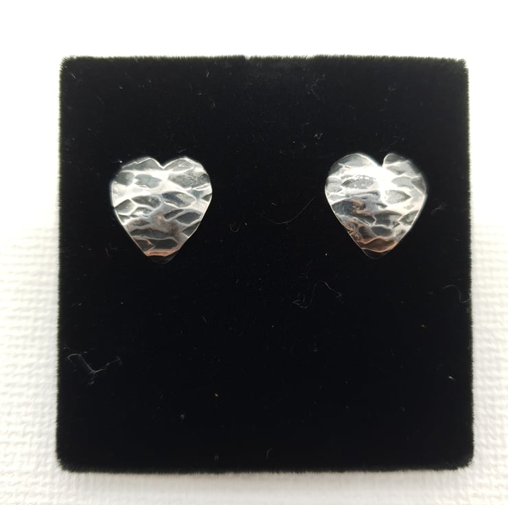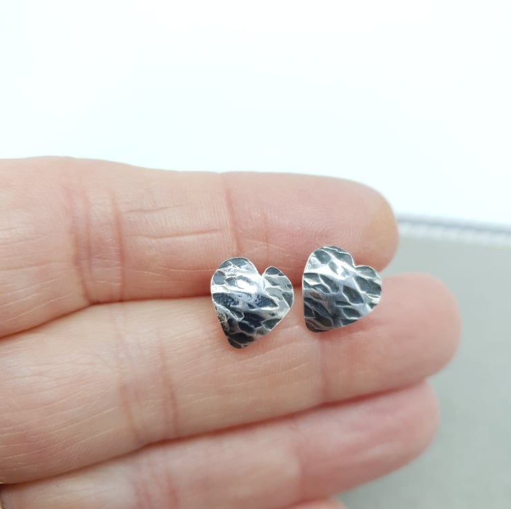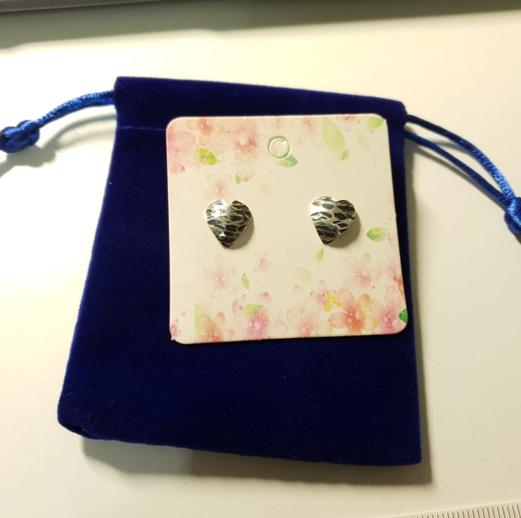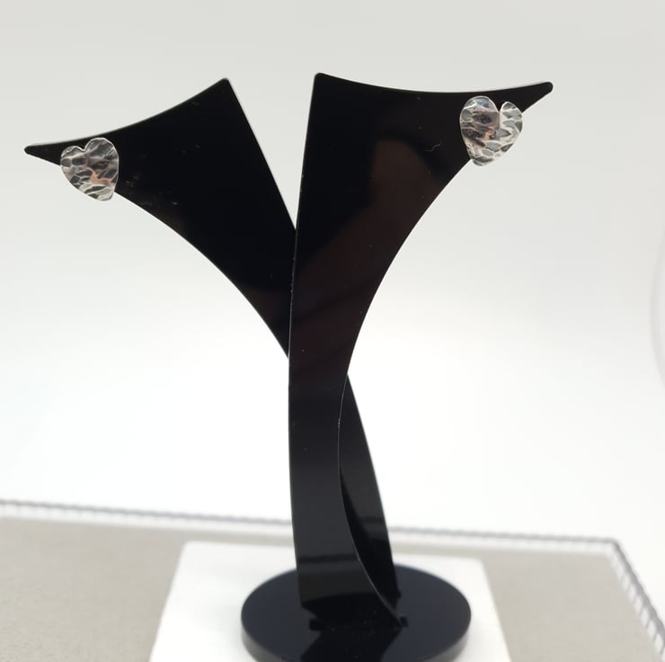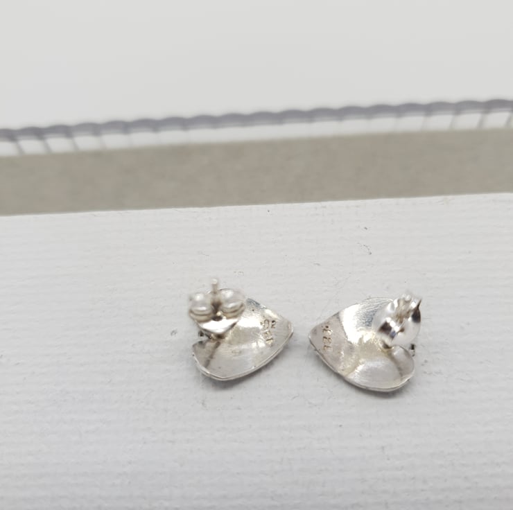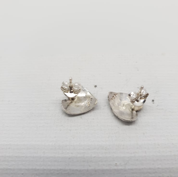The heart shapes were cut out, filed, texturized and domed and finally ear posts were soldered on.