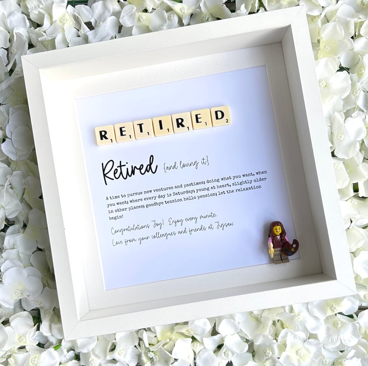 Retired Retirement Scrabble Minifigures Frame Personalised