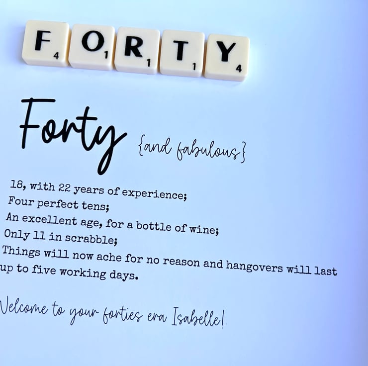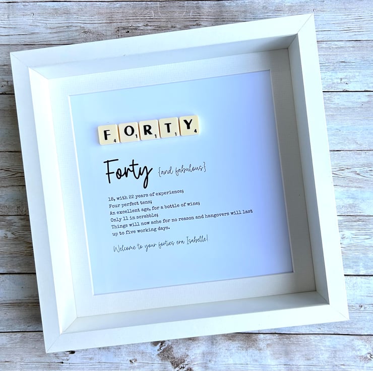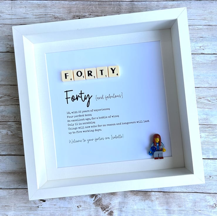 Forty 40th Birthday Scrabble Minifigures Frame Personalised