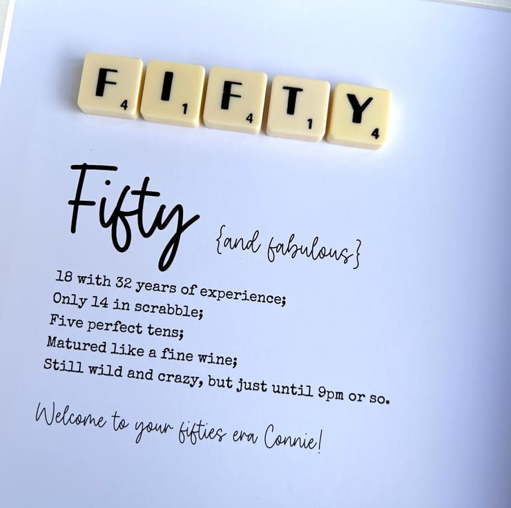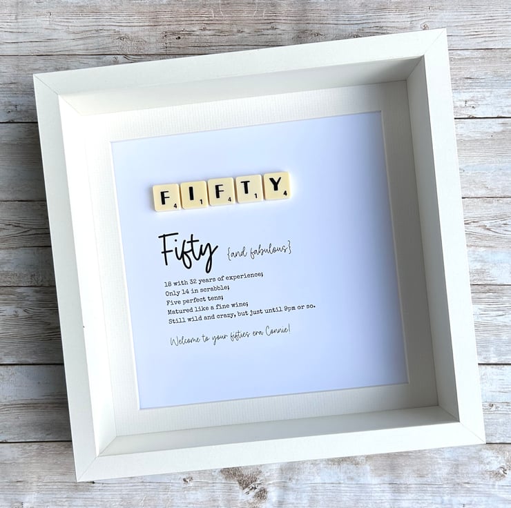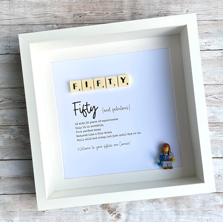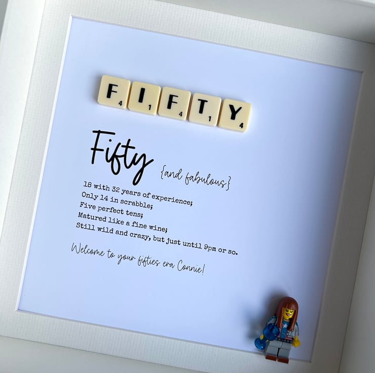 Fifty 50th Birthday Scrabble Minifigures Frame Personalised