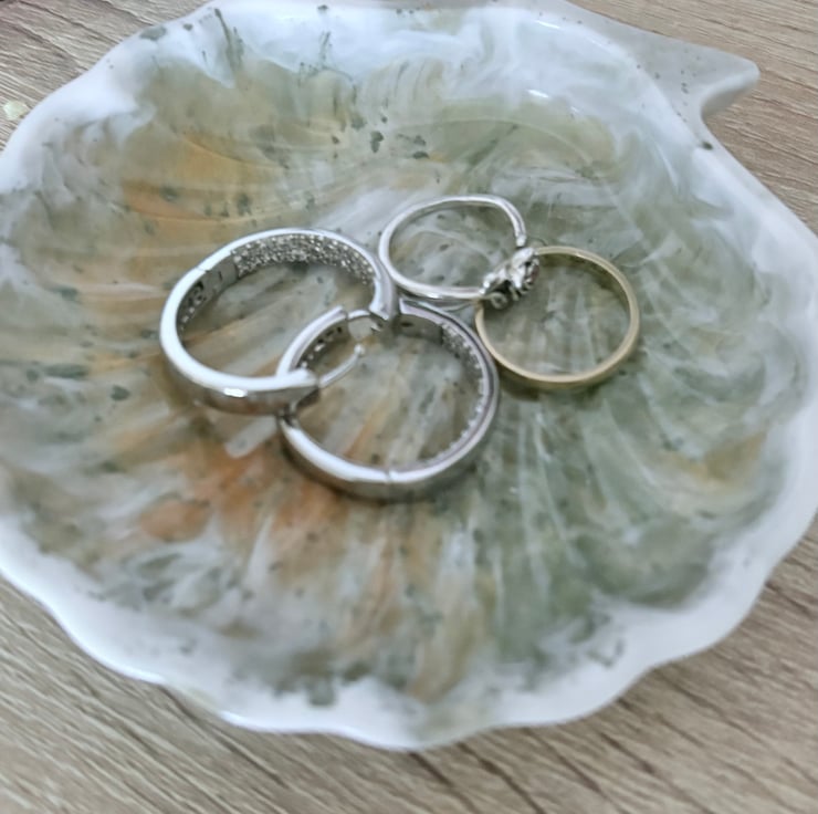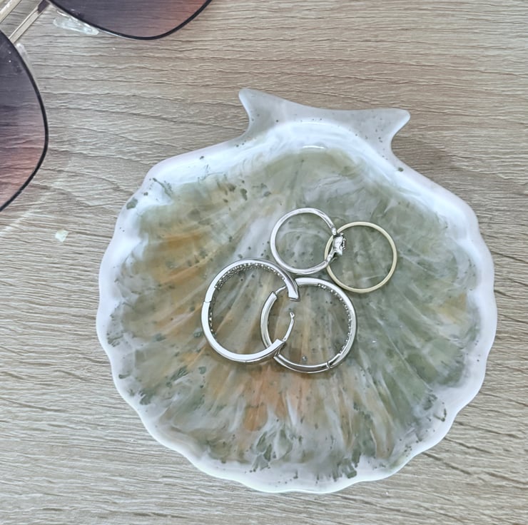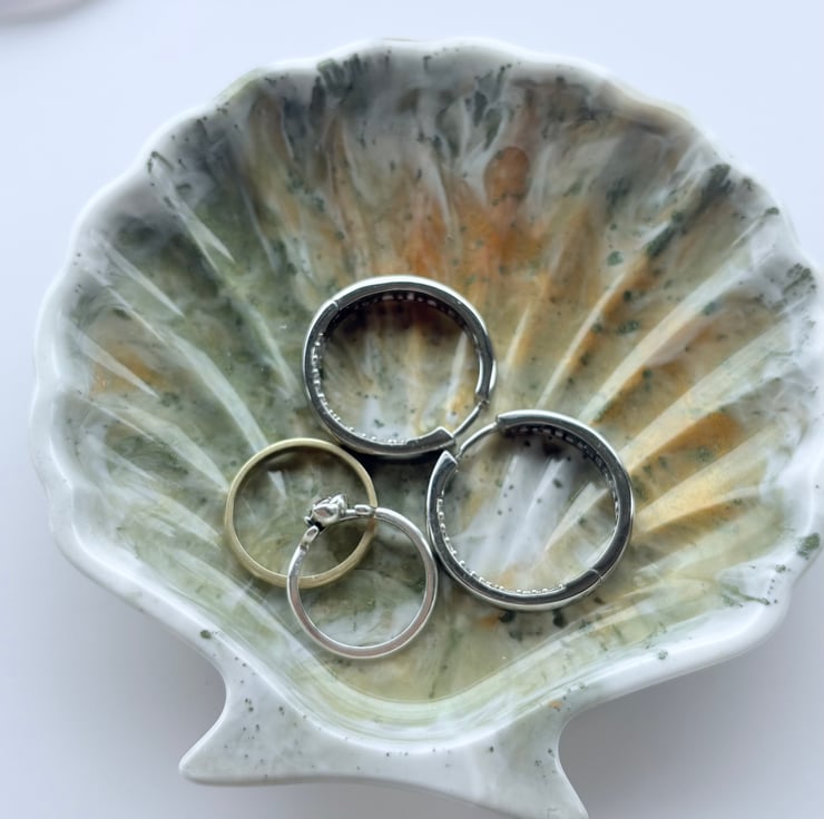 Handmade Resin Shell Trinket Dish – Sage & Warm Gold Jewellery Holder