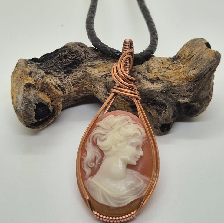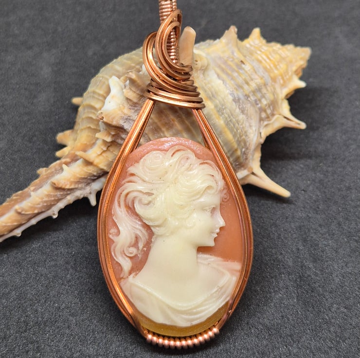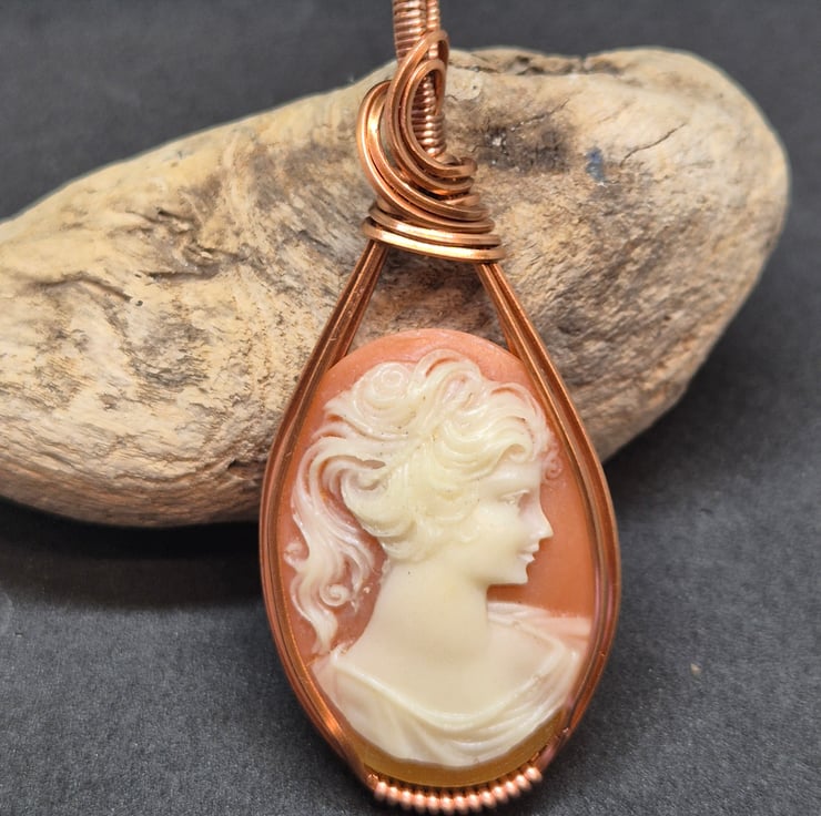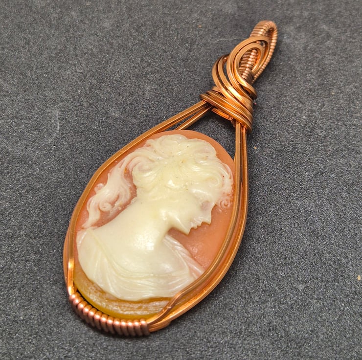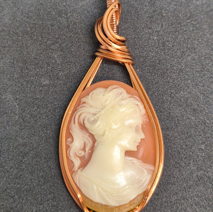 I have used square copper wire to wrap this cameo, I have used a favourite design which displays this cameo beautifully, whilst also holding it secure.