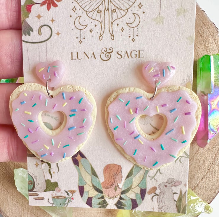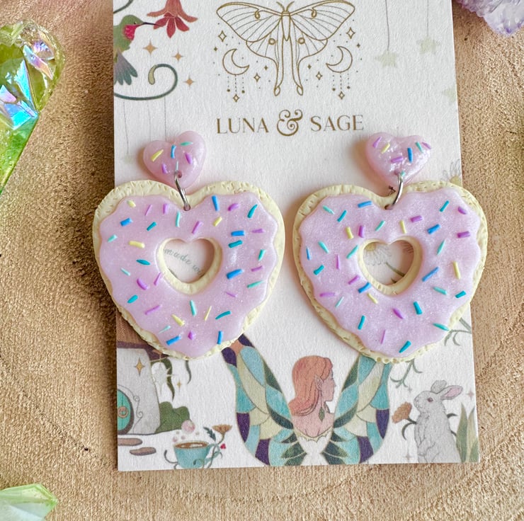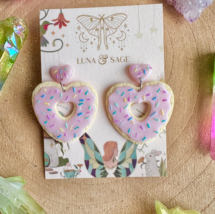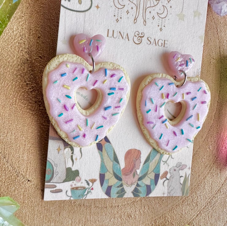 Handmade Cute Heart Iced Biscuit doughnut with sprinkles Polymer Clay Earrings