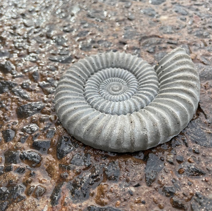 Large Elevate your home decor with this handcrafted concrete Ammonite sculpture. Cast with care to capture the intricate, swirling details of the original marine cephalopod, this piece bridges the gap between pre-history and modern art. It is finished to withstand the elements, making it an ideal choice for both your living room shelf and your garden path. A unique, durable, and affordable piece of natural history for your home. Strong magnet attached to the back and silicone film to avoid any scratches to your fridge paint 70 mm x 90mm