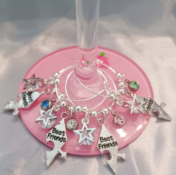 The star alloy charms feature a cubic zirconia at the centre, accompanied by a best friend puzzle and a selection of colourful gems (one supplied with each order).