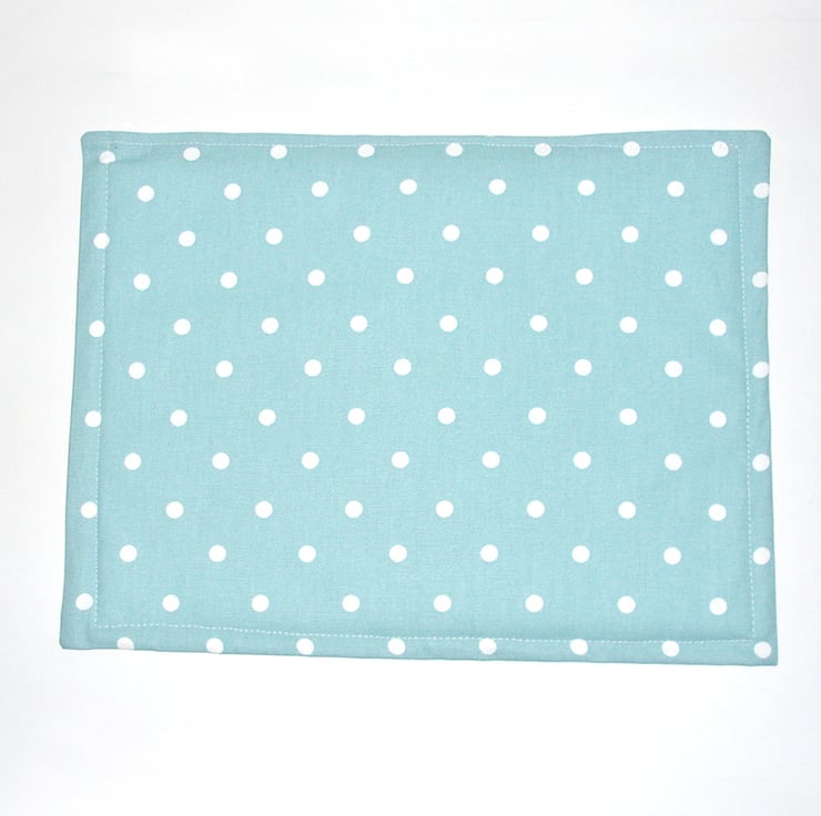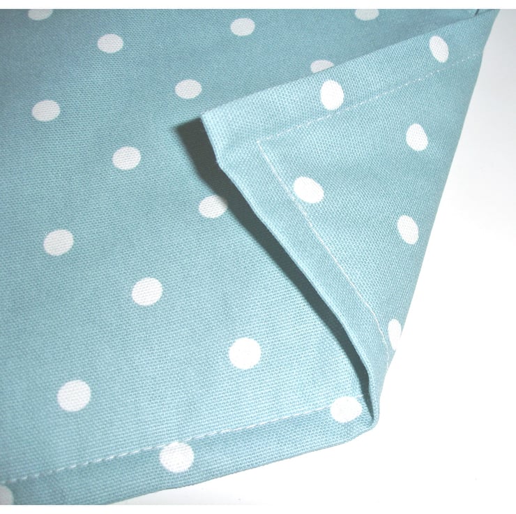 White Polka Dots on a Duck Egg Background. Double-sided in the same spots fabric.