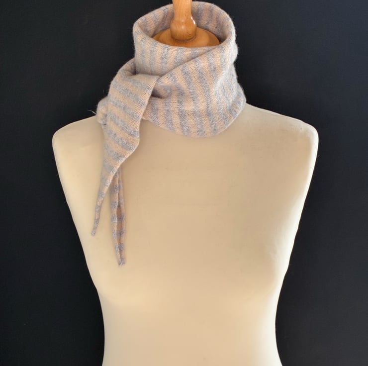 Long Pointy Scarf - Pearl Grey & Oatmeal