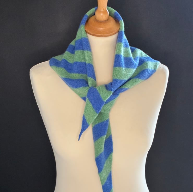 A triangular shaped scarf made from 100% super-soft, fine lambswool, gently felted for a luxurious handle. Designed to look smart casual and give your outfit that pop of colour. Perfect for the transitional time between winter and spring, or into summer if you feel the chill. Length 108 cm (point to point) x 38cm wide (at widest point).