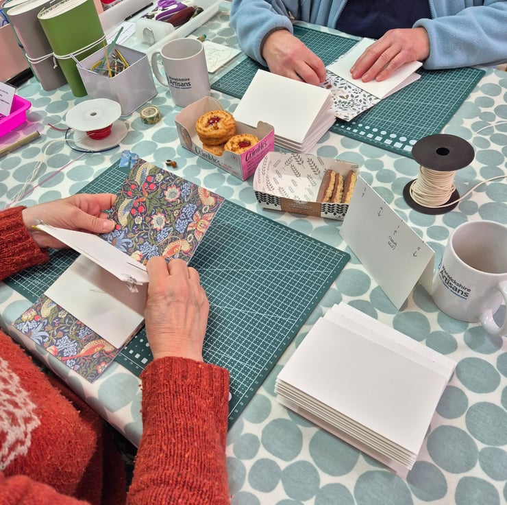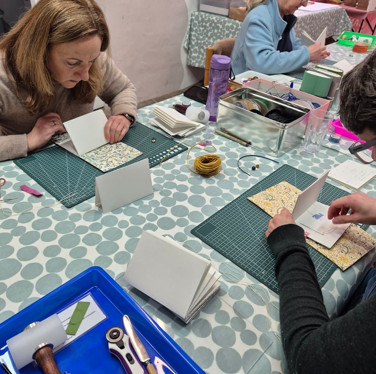 Join me for a Creative Morning on Thursday 21 May 2026 to learn to make a Hand Bound Leather Journal at the fabulous Warwickshire Artisans, The Calf Pen, Yew Tree Shopping Village, Wootton Wawen, Henley in Arden, Warwickshire, B95 6BY, 10am to 1pm.