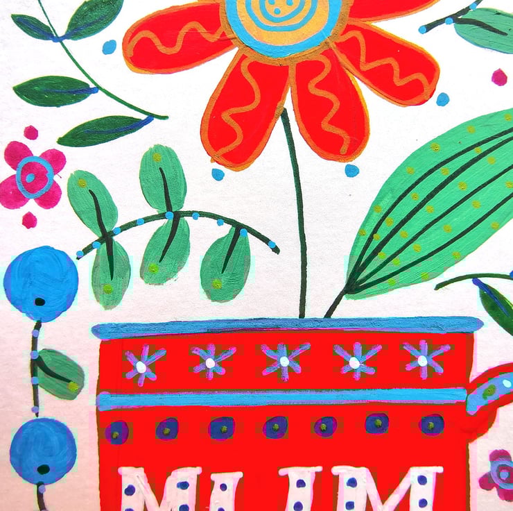 Brighten up a corner of your home - or your mums heart - with this vibrant, original, folk art painting. Whether you are looking for a unique Mother's Day gift, a birthday surprise or a “just because” token of affection, this one-of-a-kind painting shows you care.