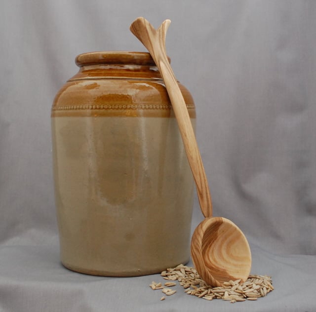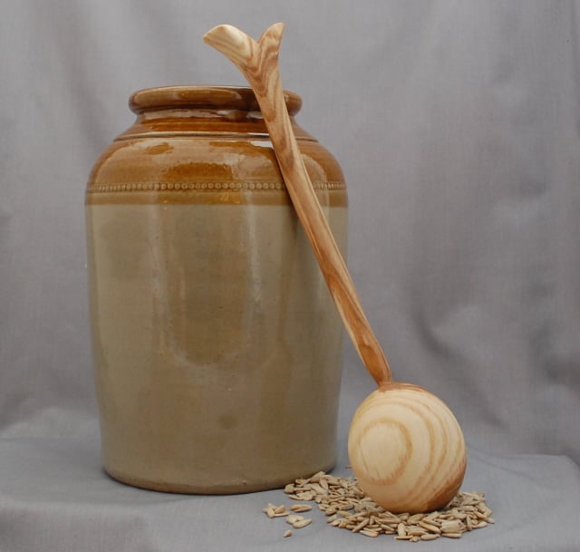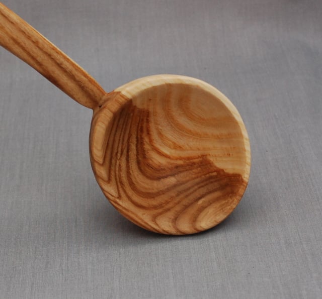 Randal carved this handsome homegrown ash ladle. The long handle enable use even when dishing up from a deep pan or bowl. Silky smooth, and treated with a food safe oil, this ladle is looking for a cook and kitchen to settle into and bring joy when dealing with food. It measures approximately 35 cm long with a width of 8cm for the bowl end. As Randal has put ”on hold” carving for now this is a truly unique item.