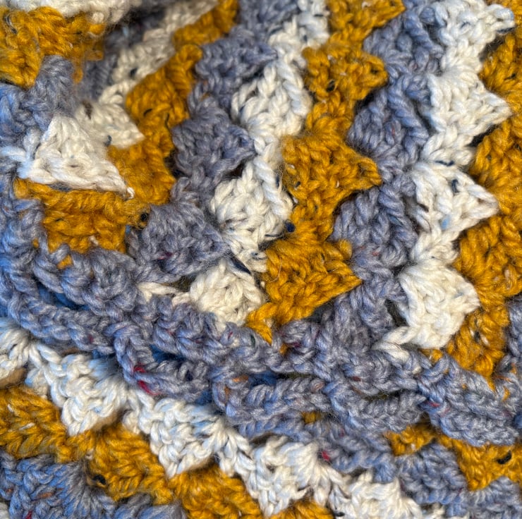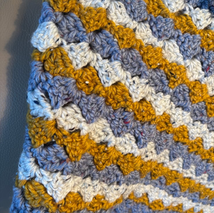 I was drawn to the colours in this wool so found a blanket pattern I liked. Added an edging to it to finish it off.