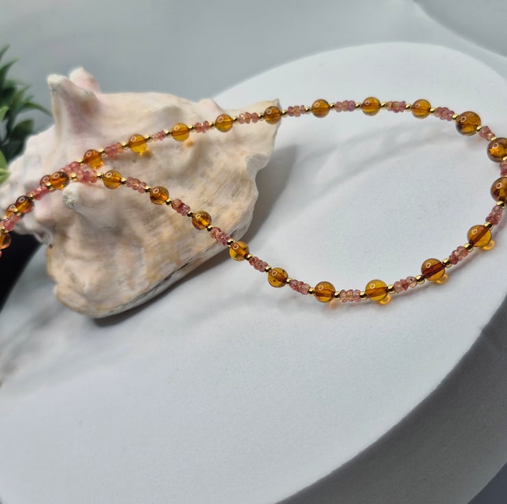 Luxury Padparadscha Sapphire and Baltic Amber Necklace
