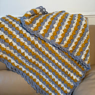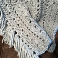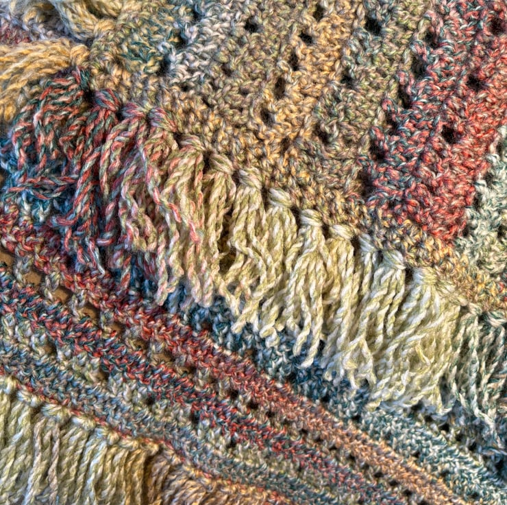 Lovely fringed blanket suitable for a lap blanket or baby blanket. Lovely earthy tones.