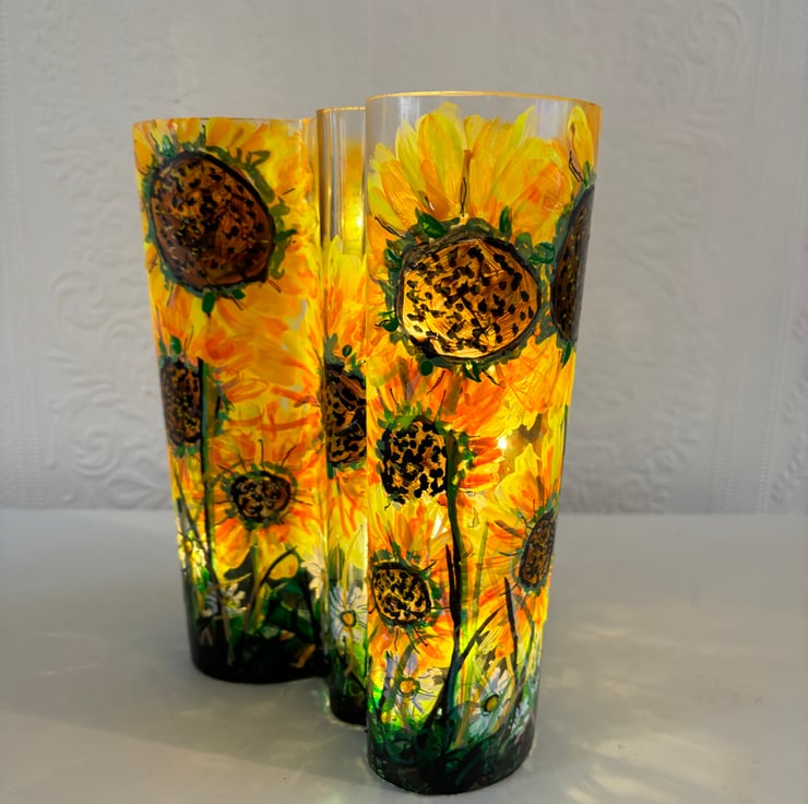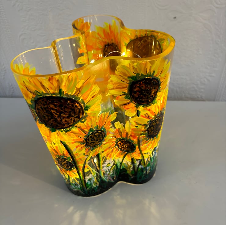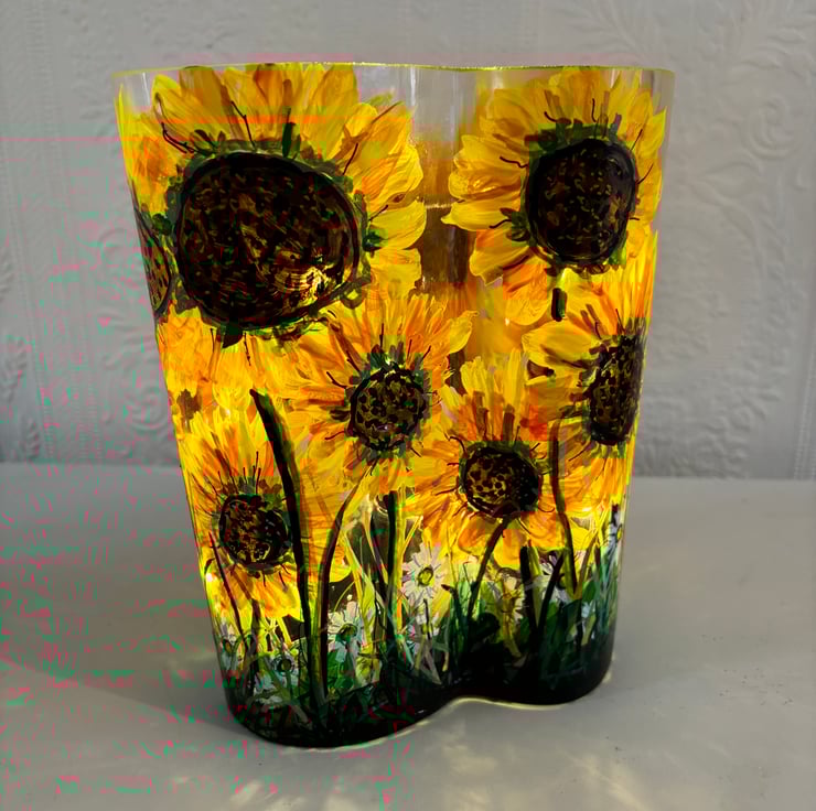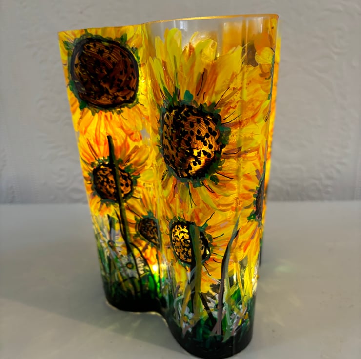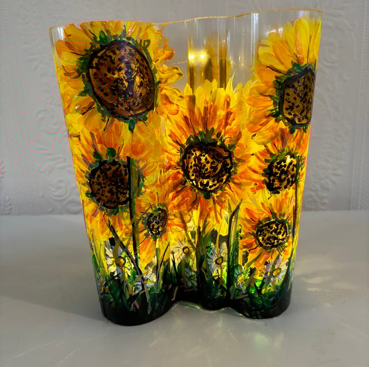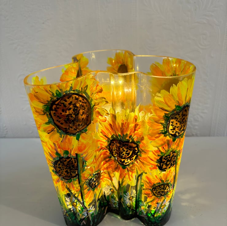 A high quality hand painted and fired glass vase by Andrew Jenkins