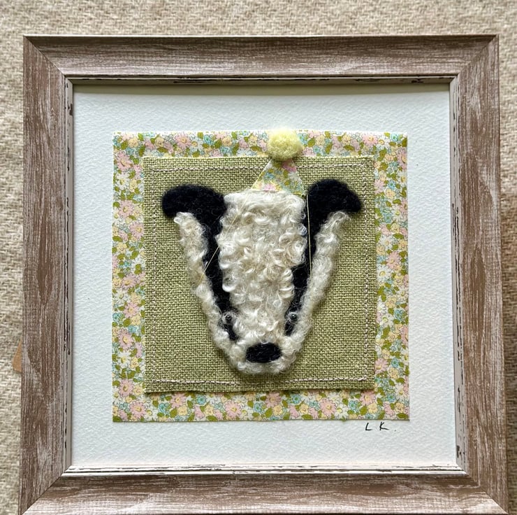 Adorable hand needle felt badger wearing a little party hat. A one off piece from my woodland animal collection.
