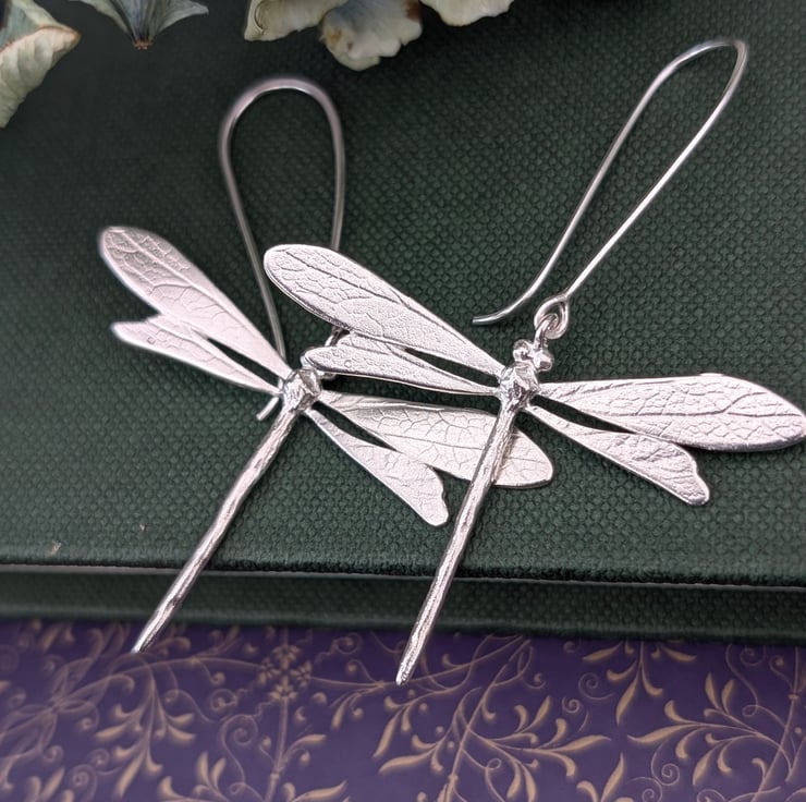 The wings of this dragonfly have been textured with the intricate imprint of a skeleton leaf, mimicking the delicate wings of an insect.