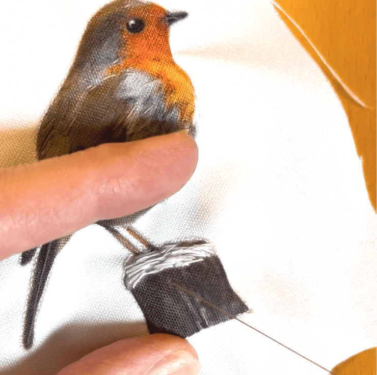 I have machine stitched and slightly padded out the picture, to give a three-dimensional appearance, then added the details with hand-embroidery.