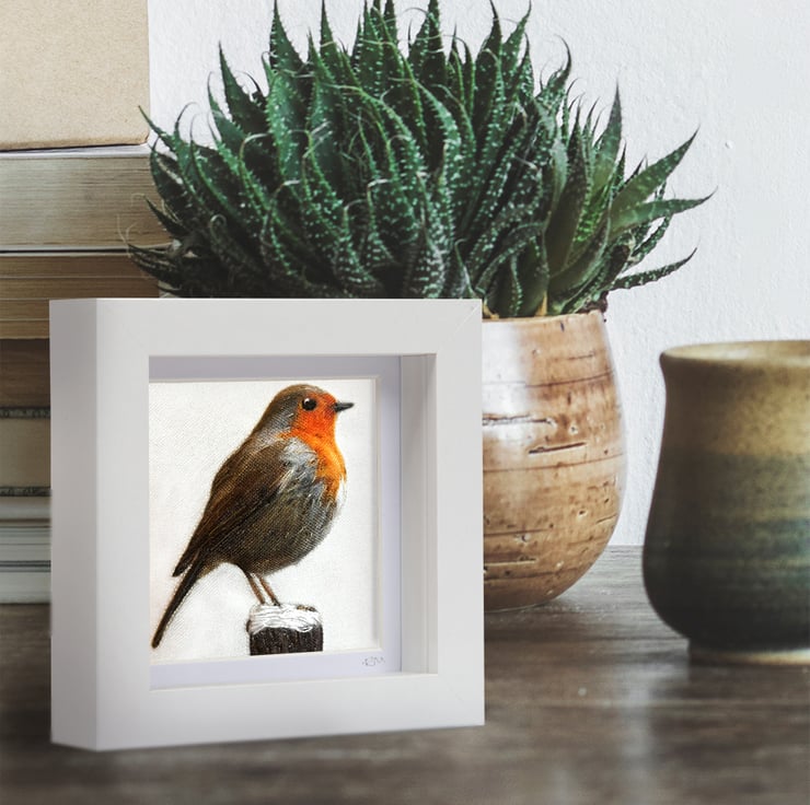 Frame size: 12cm x 12cm, depth 3cm. The frame can be hung on the wall, or stood on a shelf. (Artist signature on reverse)