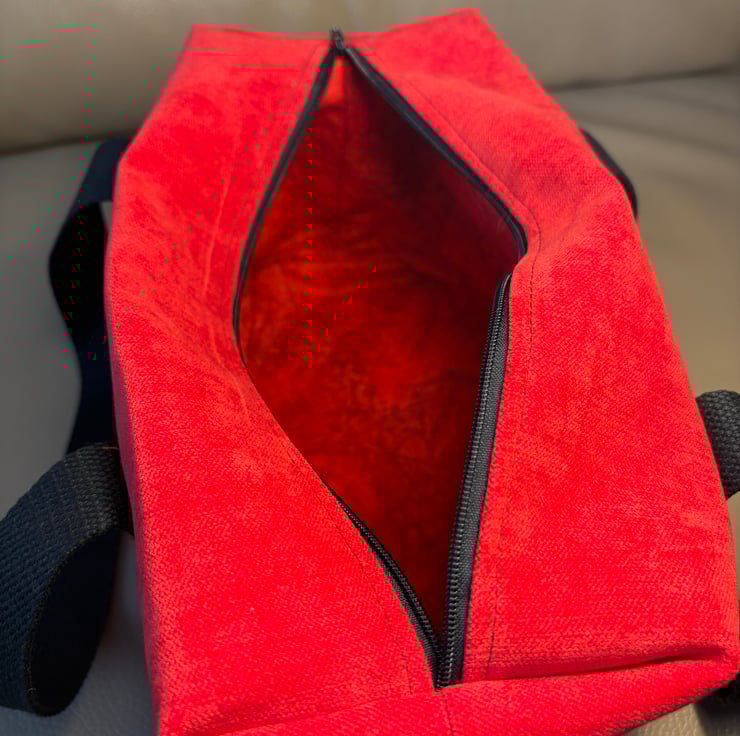 This design was taken from YouTube , I love red and black together which is why I have made this bag. It has a zipper and strong handles.